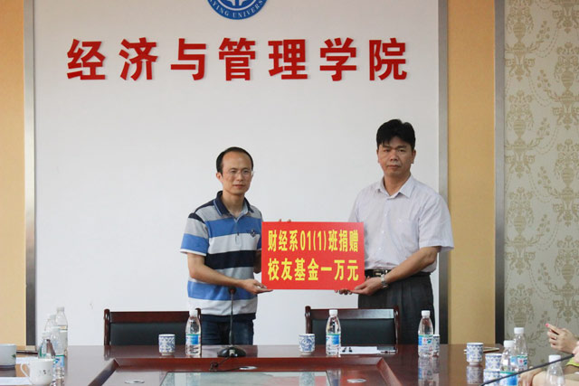 罗维新书记在致辞中向归宁母校的校友表示了欢迎和感谢,并向校友们介绍了该院十年来在专业建设、师资力量、学术平台等方面的发展情况。011班校友在会上追忆了往昔校园生活,向到场老师和同学汇报并分享了各自在毕业后十年的奋斗历程。会议期间,为表达对学院的厚重情谊,该班向经管学院捐资10000元校友基金。